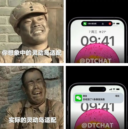 根据苹果介绍,灵动岛模糊了硬件和软件的界限,将给用户带来与iPhone交互的全新方式。然而理想是美好的,现实总是不太一样。真机到手后,用户才发现灵动岛并不像它宣传的那么灵动。