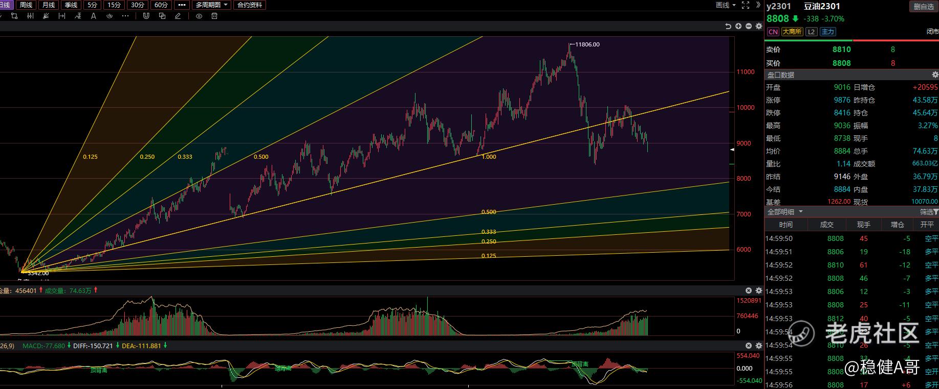 其实豆油在月初的时候跌破支撑线以后基本趋势就是要走空了,我们之前文章也说过就是一直看空的一个趋势按照目前走势节后大概率要破新低了!