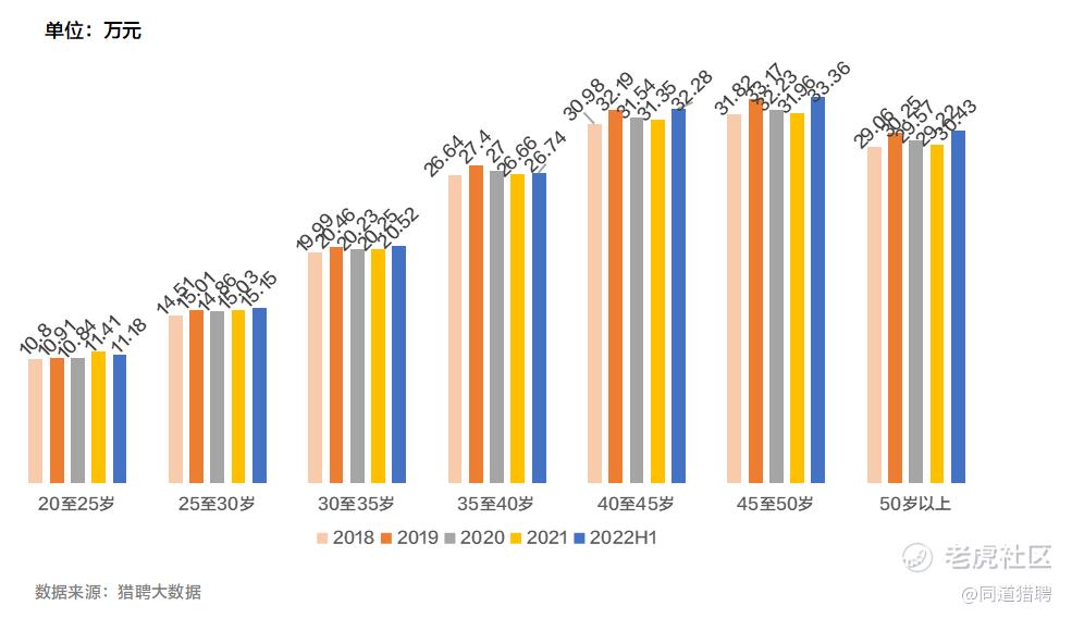 ▌ 全国不同年龄段中高端人才平均年薪变化趋势