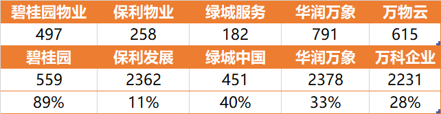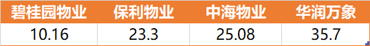 但是我们换个姿势来比较一下,按照物业公司市值与地产母公司市值对比的情况,万物云其实属于中间水平。