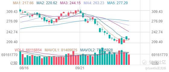 这是$特斯拉(TSLA)$ 截至昨天的走势,收盘价222.04, 近期股价从前期低点形成的支撑位貌似有所反弹, 但是昨天公布的三季度业绩又不是非常好,盘后跌幅又有扩大。