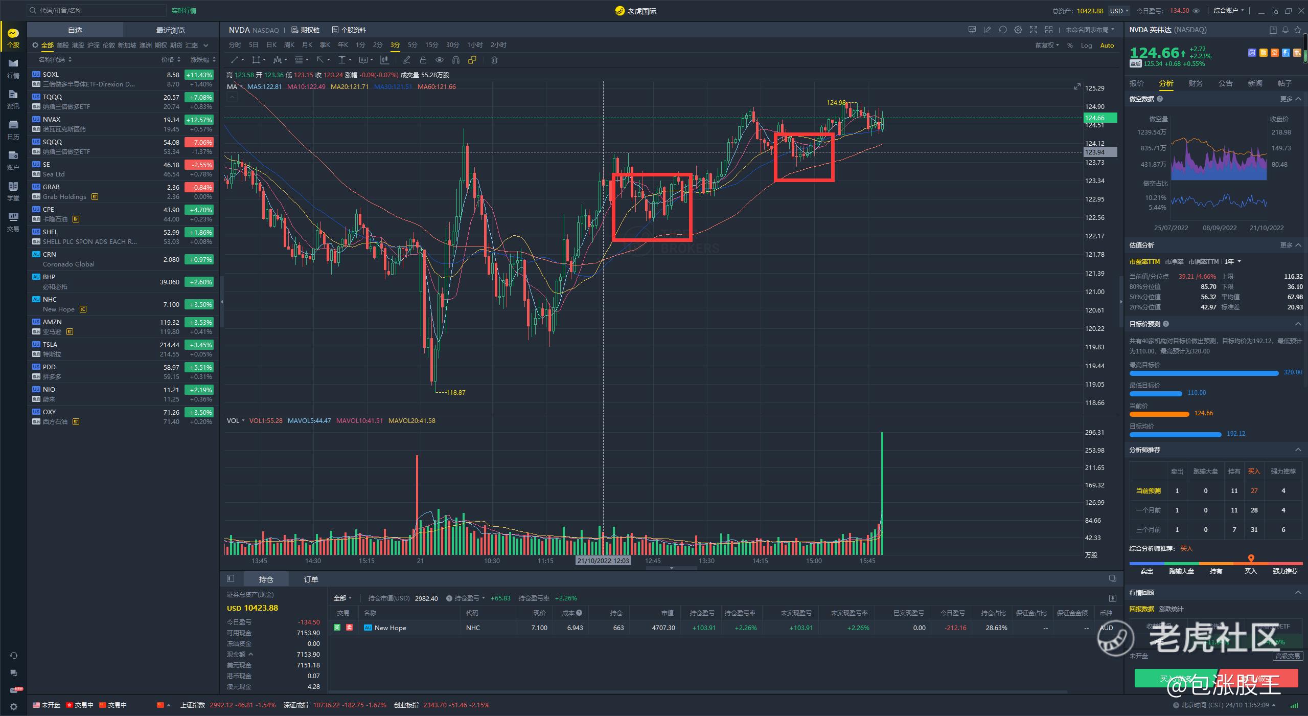 这个就很有意思,在三分钟级别回踩了两次,如果说在15分钟图看的话在压力位,并没有成功的突破,个人认为持有英伟达的话115作为防守位,要是跌破的话可以做一个离场,没有跌破的话可以,你想要继续持有多头仓位我觉得也行!