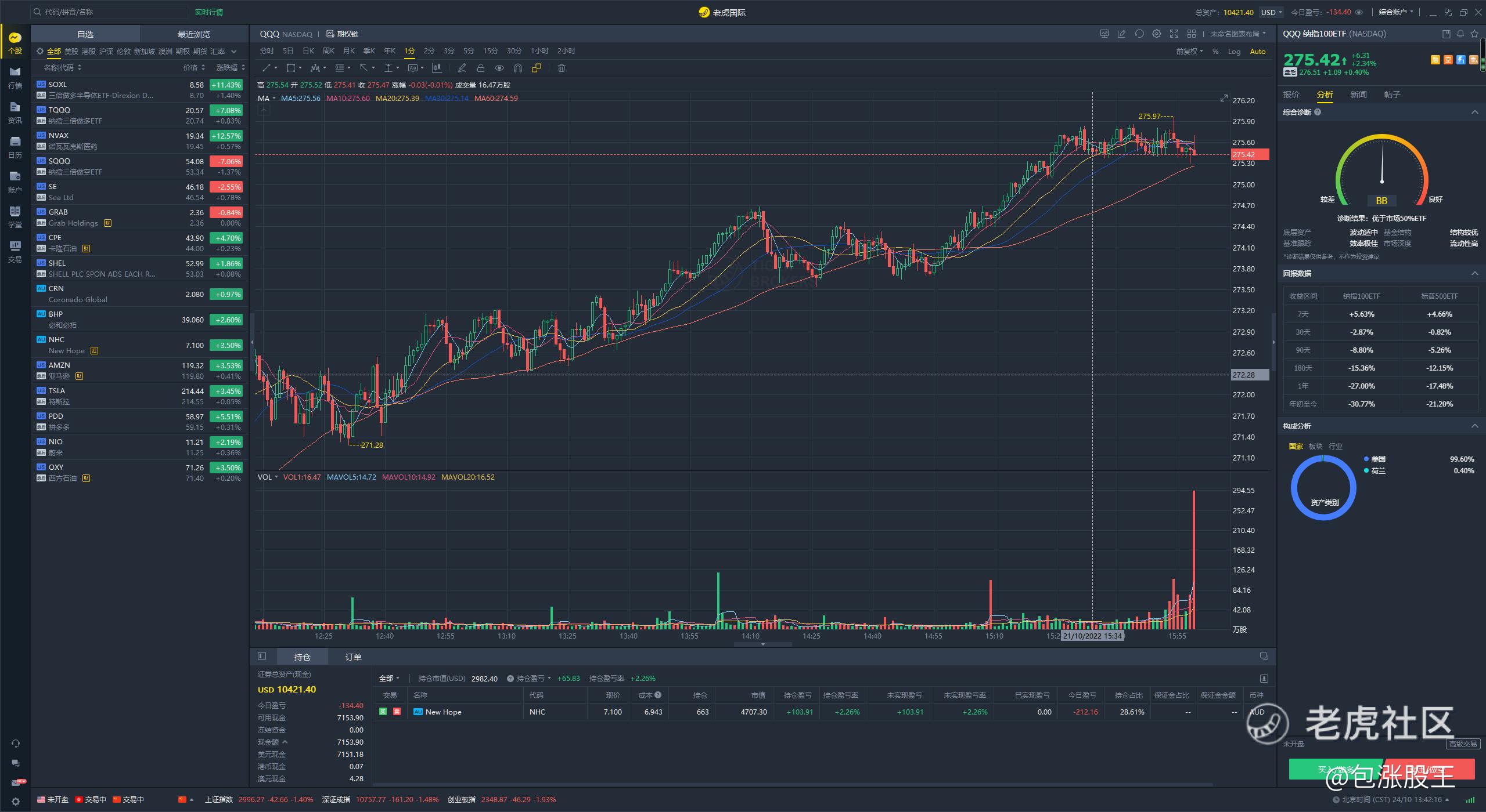 先来说QQQ 现在其实大盘的对称性还是不错的有四次回踩,今天我认为回踩的几率还是蛮高的,不要去因为周五涨的很好今天追高进去买,今天要是高开的话我会进去做空的!