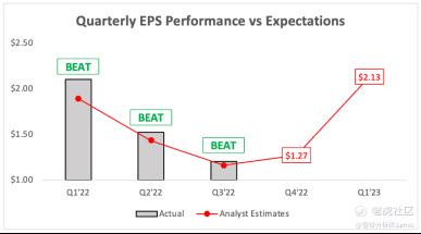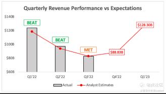 有没有“盲生发现了华点”?没错,我们预测23年第一季度将会大幅好转。分析师们预测圣诞节等假日购物,以及“爱疯14”发售一季度之后的影响,会让果子“芜湖起飞”。