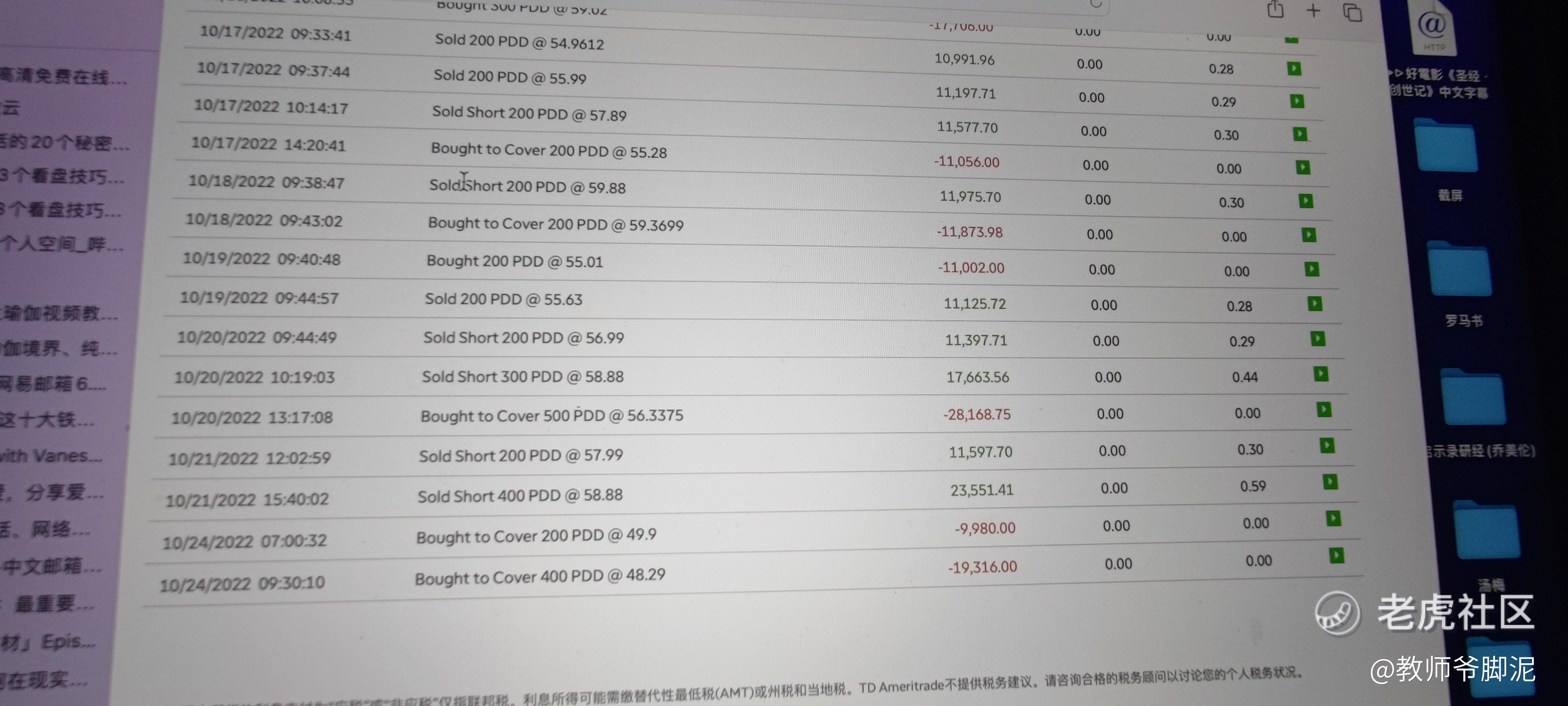 什么时候开始在PDD上买东西没有印象了,因为总是感觉PDD上买的东西比较抵挡。以前只认可名牌,进口的大品牌。大部分人只认可京东商城上购买!某天发现PDD的市值已经超过了京东,而且在美国上市了,并且同样的商品在PDD上比JD上更便宜,到货更快,服务更好后我的购物习惯开始改变。有一次在sams买摩咖电脑椅直接就会想到PDD上比较一下价钱[开心] 。当然PDD还有许多不尽人意的地方。但是不能否认PDD是一家优秀的上市公司。尤其是当PDD的股价二次探底40几元的时候我开始参与了PDD的股票投资。在40-73元快速上升时期,以及从71元降到前天的38.80元我都积极参与了!说实话我一直不看好美股。我牢记中国的房事,美国的股市就是两个最大的黑天鹅。所以71元开始我一直是卖空操作(可能有人会喷我)。前天从58直下38.80可能好多股友是悲惨的一天,但我是做空的。我58.88-57.99是卖空的!当天晚上我49.90元,48.28元补回了!虽然只有一半收益[笑哭] ,我总觉得应该留些钱给别人赚。然后我在38.98见底后买入了,晚上一点多在42元又卖了。感觉应该还会反弹昨天46.03-47元又买入了!晚上醒来47.23又全部卖了!最近大环境不安定留在手上不安全!总之生活上PDD,赌博也离不开PDD。当然做错趋势,左右打我脸教训在我这一定存在。目标就是跟着趋势,做好波段,顺水顺风,左右逢源,才能天天开心!此文仅供PDD同仁参考,祝投资顺利,天天开心😊
