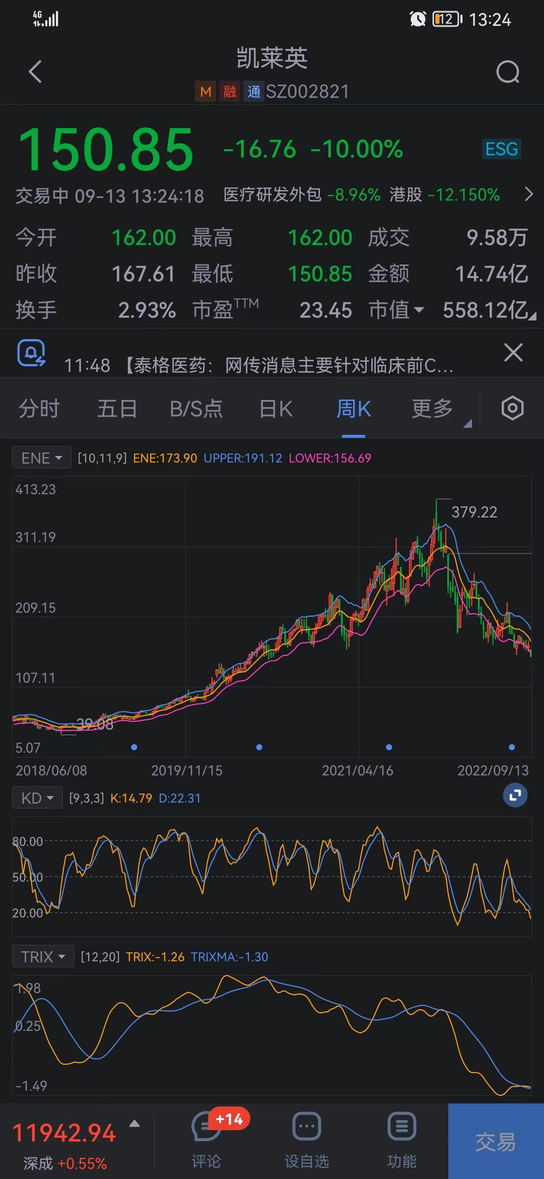 而凯莱英今年的半年业绩增长超过300%,股价依然下跌
