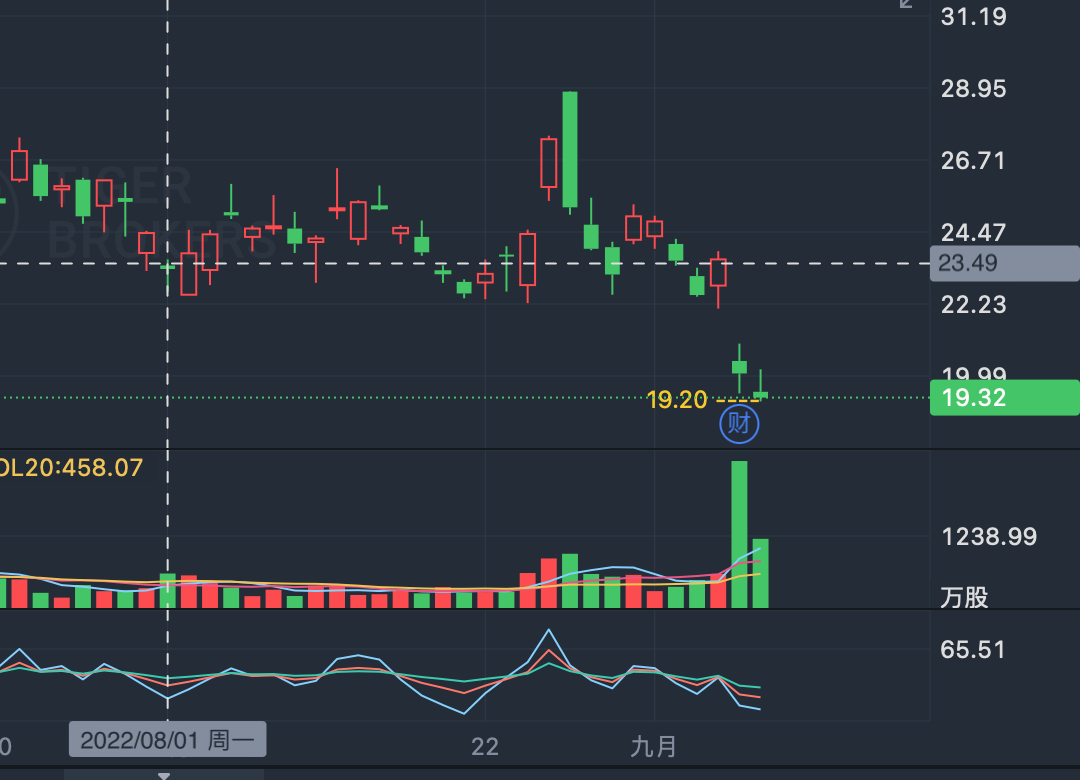 1.交易量。2021年、2022年哔哩哔哩年交易量分别为13.77和14.46亿股,折算日交易量约为550、820万股。9月8日股价大跌当日,成交量2529万股,三倍于平均日交易额,但仅仅收获了一个纺锤体,开盘价和收盘价分别为20.46美元和20.07美元。这么大的交易量下,仅仅收获了这个有大致上下影线相同的纺锤体,是比较异常的现象。说明空头的力量已经用尽,或者子弹差不多用完,也没有办法让股价继续下跌。说明多头力量强大,多头认为哔哩哔哩的股价已经下跌到了合理水平,所以才会有多少空头的卖出,就有多少多头接单,基本达到一种平衡。空头投入的筹码,被多方悉数接受。所以才会出现9月9日开盘之后,在当日15分钟蜡烛图上,收获一个白色锤子线形态,似乎有反弹的市场迹象。9月9日的蜡烛线反映出,虽然空头力量仍然强大,但最终收获了倒锤子线形态,其小实体和长长的上影线,无不反映出多头的积极心态。本日交易量虽然比9月8日低,但也有1191万股,是日均交易量的1.5倍,超过前面9月5、6、7日三天交易量之和,交易量大而价格呆滞。