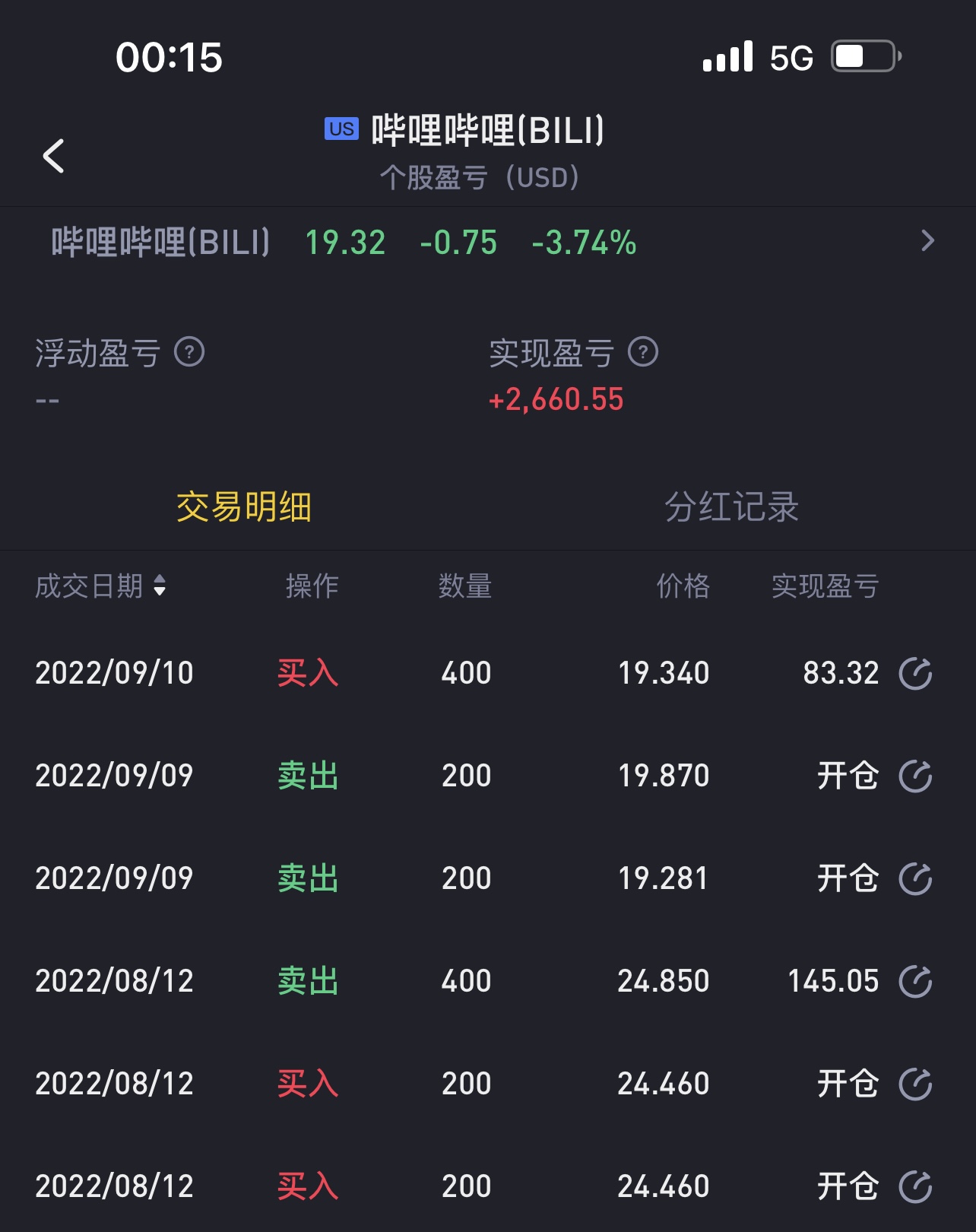 个人一直看好中概股,重要原因是看好中国国运和未来的发展。没有什么苦难是拥有5000年历史的中华民族所不能跨越的,什么也不能改变中华民族勤劳、智慧、互助友爱、爱好和平、强适应力等特质。所以虽然哔哩哔哩并不符合个人的投资标准,也还是谨慎地做了一点儿尝试,上图为证。