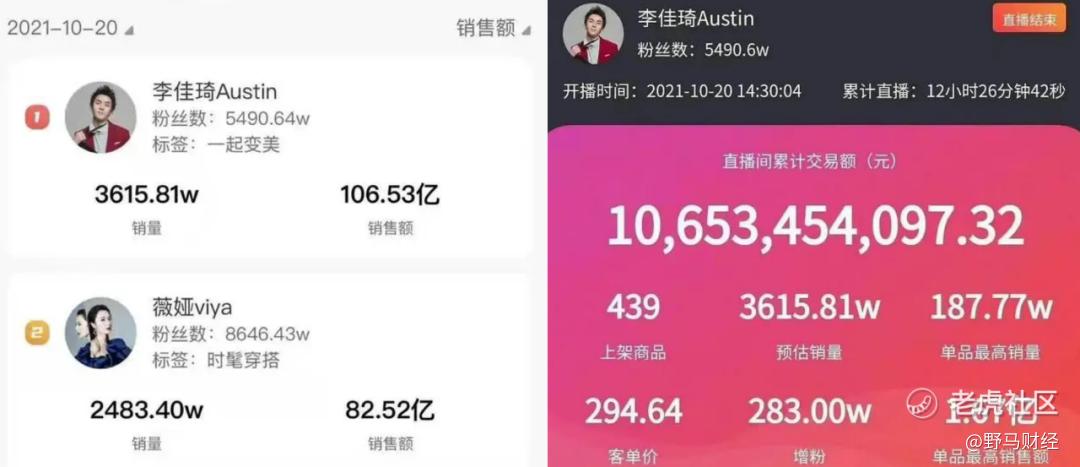 熟悉淘宝直播的消费者可能还记得,2021年10月20日淘宝开启双11预售当天,李佳琦、薇娅合力拿下近190亿销售额的消息。这个数字已经超过了A股2020年90%上市公司的营收。淘宝直播数据还显示,当日李佳琦和薇娅直播间观看人次均超2亿。
