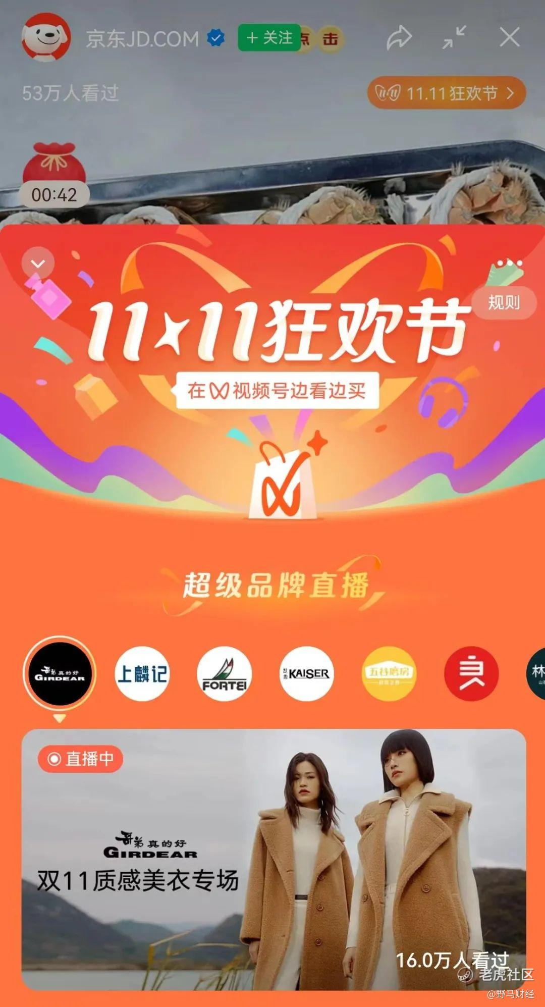 微信视频号则于10月31日晚开启了“直播11.11狂欢节”,并在期间通过平台流量激励、主会场核心推荐位展示、行业运营深度指导等举措助力商家增长。