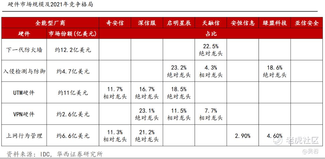 同时,在行业强合规的环境下,客户对于网安传统硬件,趋于选择市占率高、更加成熟的产品,叠加上数据优势及成熟的销售渠道,网络安全产商在硬件领域往往强者恒强。因此硬件可以称的上是全能型网络安全厂商的基石业务,持续为其贡献稳定现金流。
