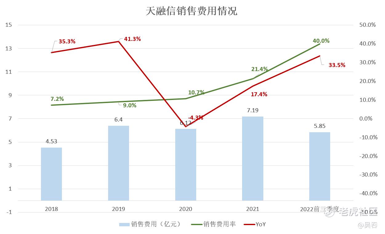 今年前三季度天融信销售费用同比增长33.45%,销售费用率同比增加8.4 pct,主要原因就是加大地市下沉及渠道拓展。此外,正所谓“马儿要吃草,才能跑得快”。在今年企业普遍裁员、降薪的大环境下,天融信前三季度销售人员同比增加24%,销售人员薪酬同比增加31.6%。