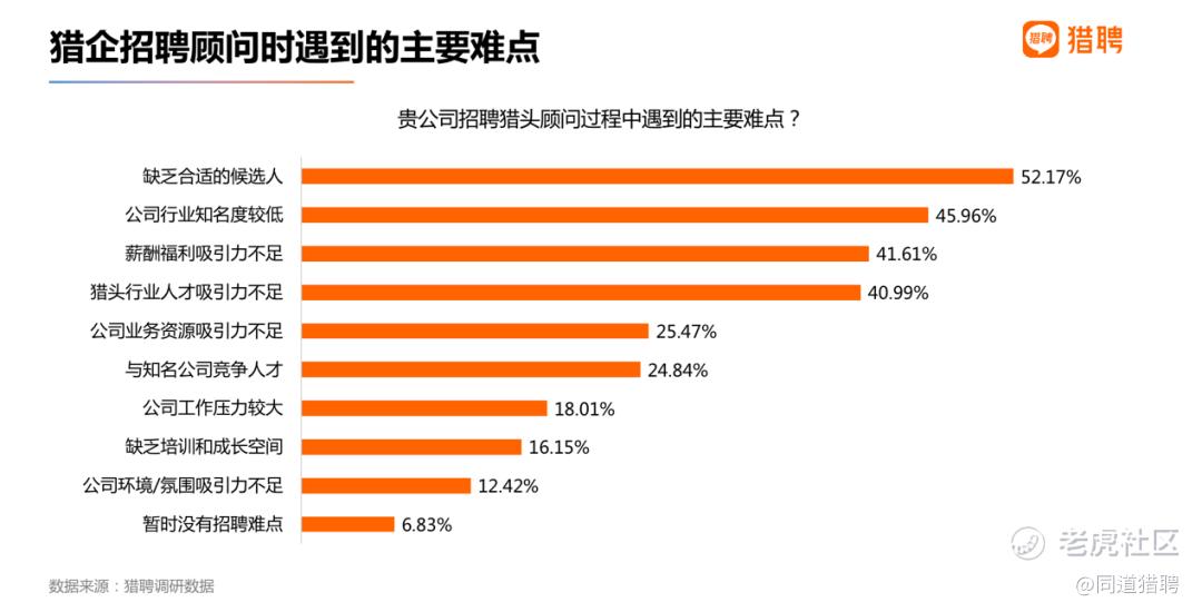 3.缺乏合适的候选人是猎企招聘顾问的主要难点