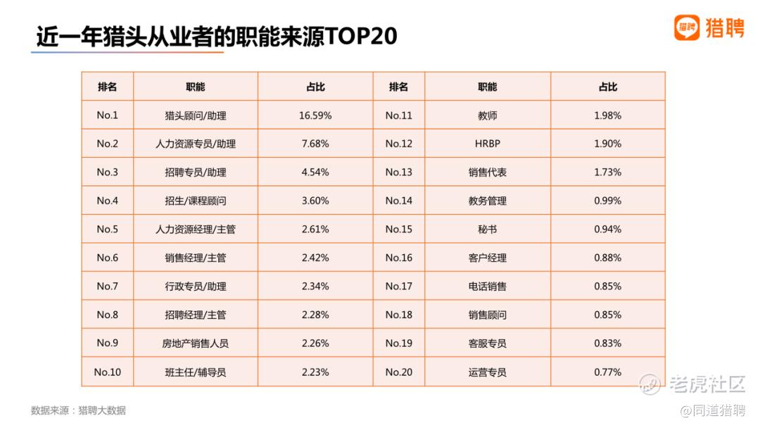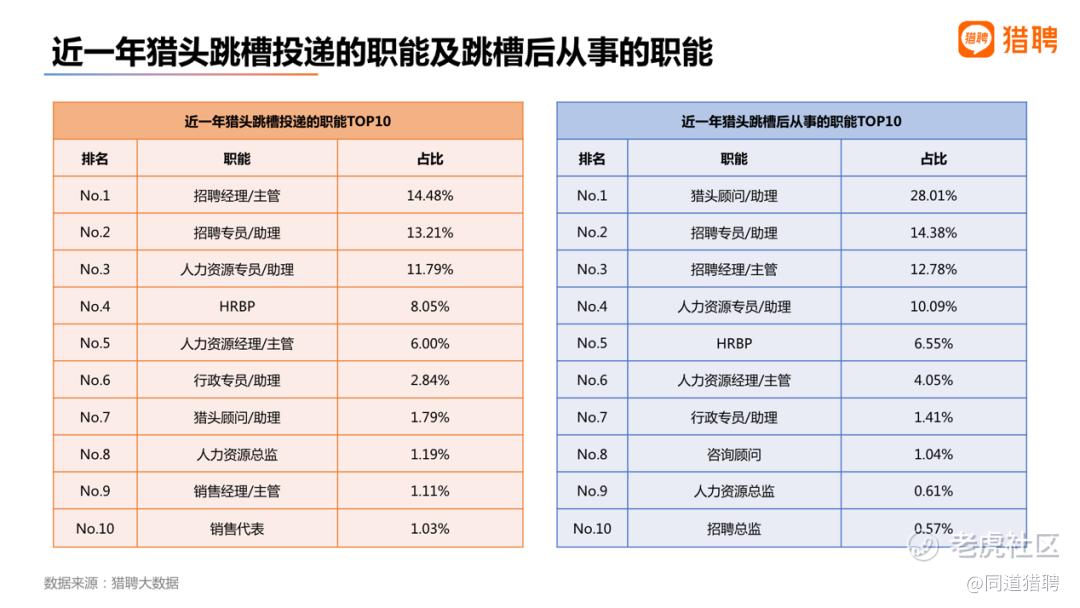 1.猎头跳槽主要投递人力资源职能,销售职能也有少量占比
