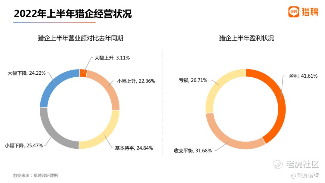 但我们也看到,在猎企上半年盈利状况中,有41.61%的猎企实现盈利,31.68%的猎企收支平衡,合计超7成,说明行业具有良好的抗风险能力。