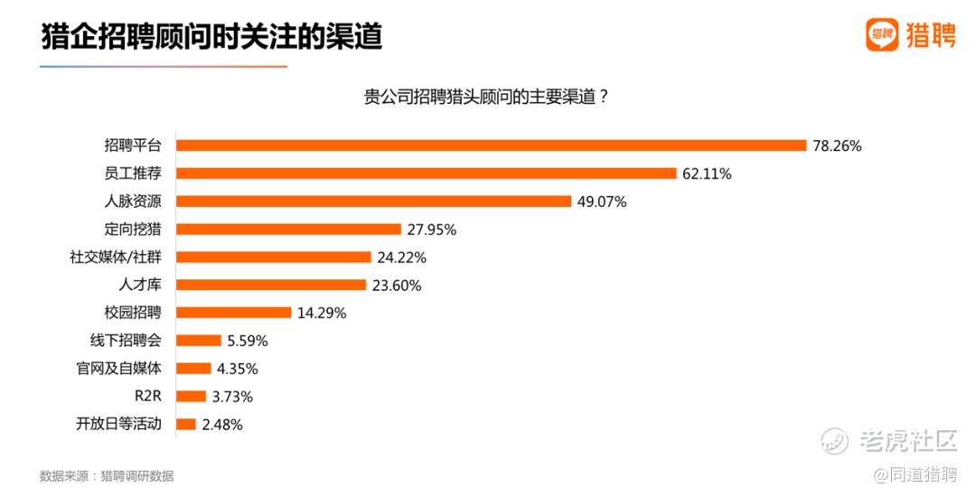 2.招聘平台、员工推荐、人脉资源是猎企招聘顾问的主要渠道
