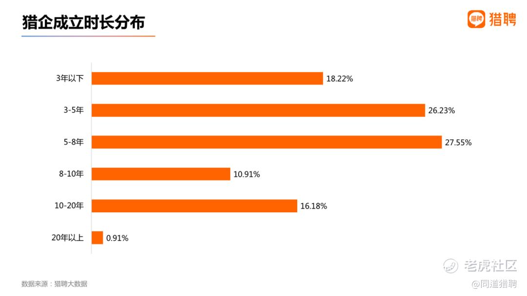 1.成立时长3-8年的猎企数量最多,占比超5成