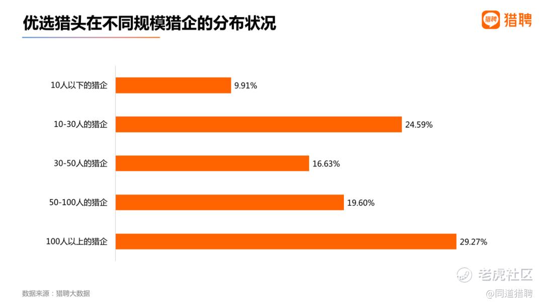 3.猎聘平台优选猎头在不同规模猎企的分布状况
