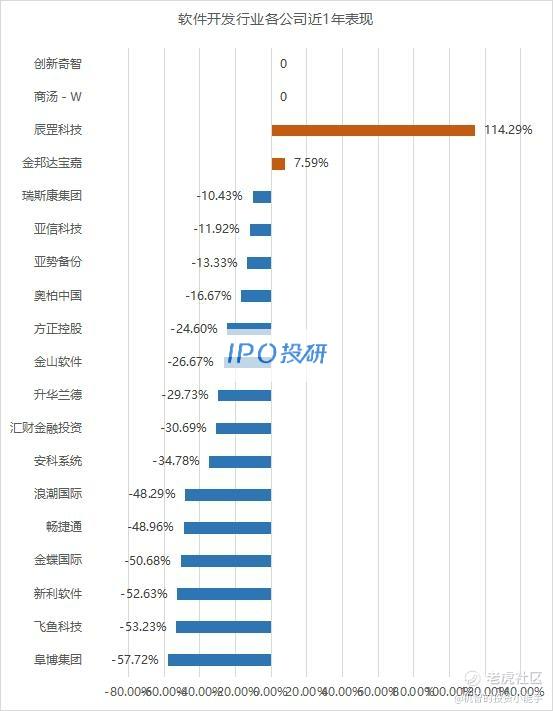 近1年涨幅最大的是辰罡科技(08131.HK),涨幅为114.29%;跌幅最大的是阜博集团(03738.HK),跌幅为-57.72%。