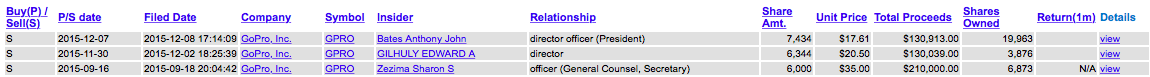 11月30日,GILGULY EDWARD A以20.5美元的价格出售了6344股,12月7日Bates Anthony John 以17.61美元出售了7434股,在这么低得价格出售股份,如果不是自己本身急着用钱,就只能说明他们公司的领导班子都不看好自己公司了。