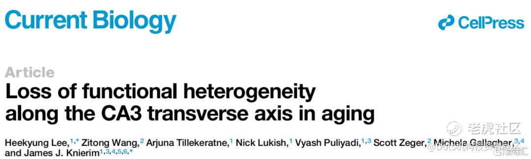 2022年5月20日,美国约翰霍普金斯大学的研究人员在 Cell 子刊 Current Biology 上发表了题为:Loss of functional heterogeneity along the CA3 transverse axis in aging的研究论文。