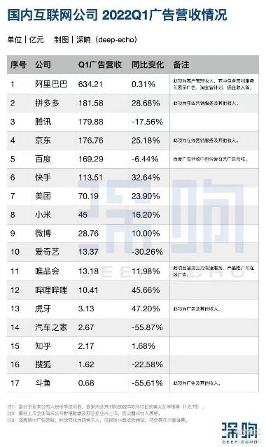 仔细看一下,发现快手Q1广告营收虽然总额排第六,但是增长率可是比阿里还高,真不戳