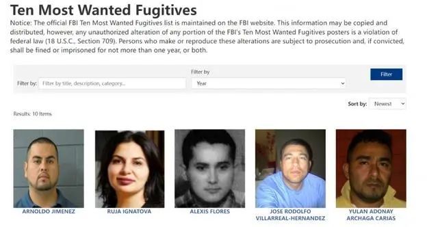 FBI十大通缉要犯名单,左二为鲁亚·伊格纳托娃