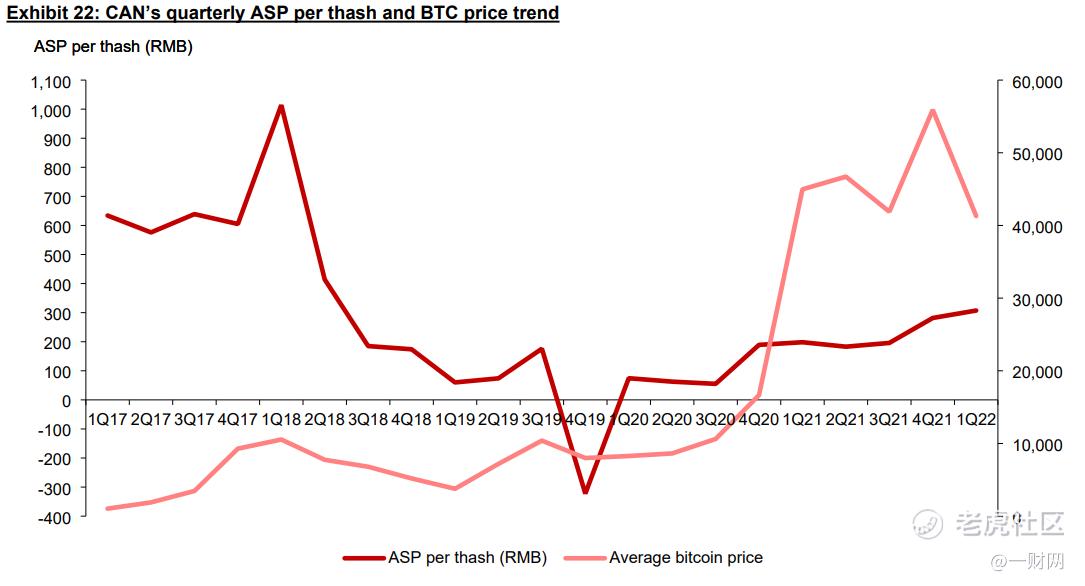 华兴资本认为,虽然矿机价格趋势跟随BTC价格趋势,但矿机的实际价格调整往往滞后于BTC,因为合同定价是基于销售协议签署日期的BTC价格,这通常是在交付前一到两个季度。在BTC价格下跌期间,嘉楠科技矿机的平均销售价格通常更具防御性,但其出售的算力受到BTC价格波动的强烈影响。