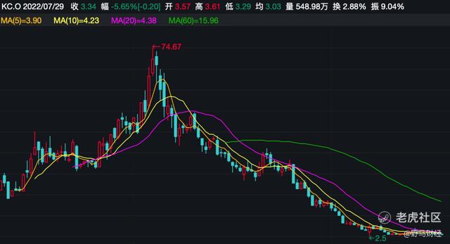 2020年5月,金山云登陆纳斯达克,上市首日涨超40%。然而,半年后,金山云的股价走势就来到了拐点,并急转直下,较高点跌超95%