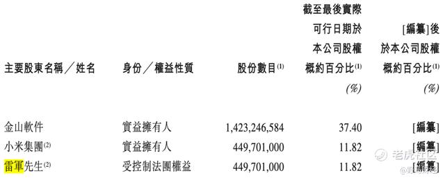 截至目前,金山软件、小米集团以及雷军是金山云的前三大股东,分别拥有的股权占比达到37.4%、11.82%及11.82%。