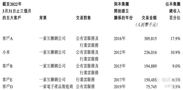 从最近三年的前五大客户来看,金山软件集团在2020年退出前五客户之列,小米则是一直稳居前三名的位置。此外,前五大客户中,最晚也是从2019年开始合作,近两年没有新增的客户能挤进前五。