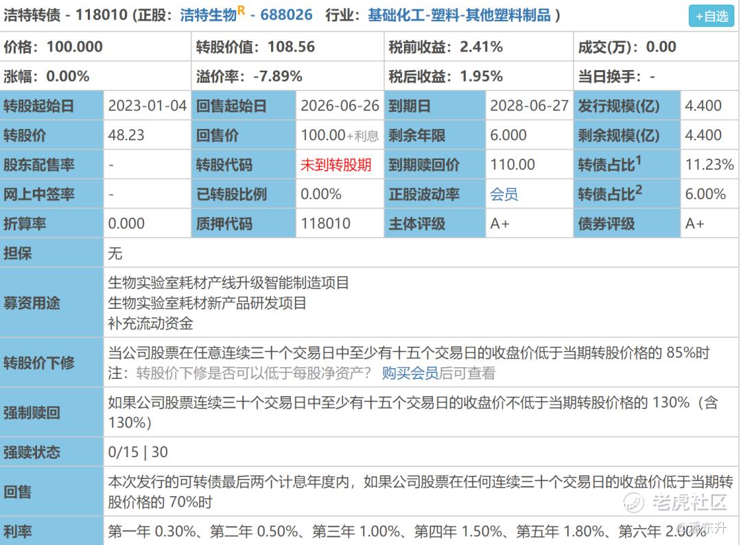 6月28日洁特转债申购分析