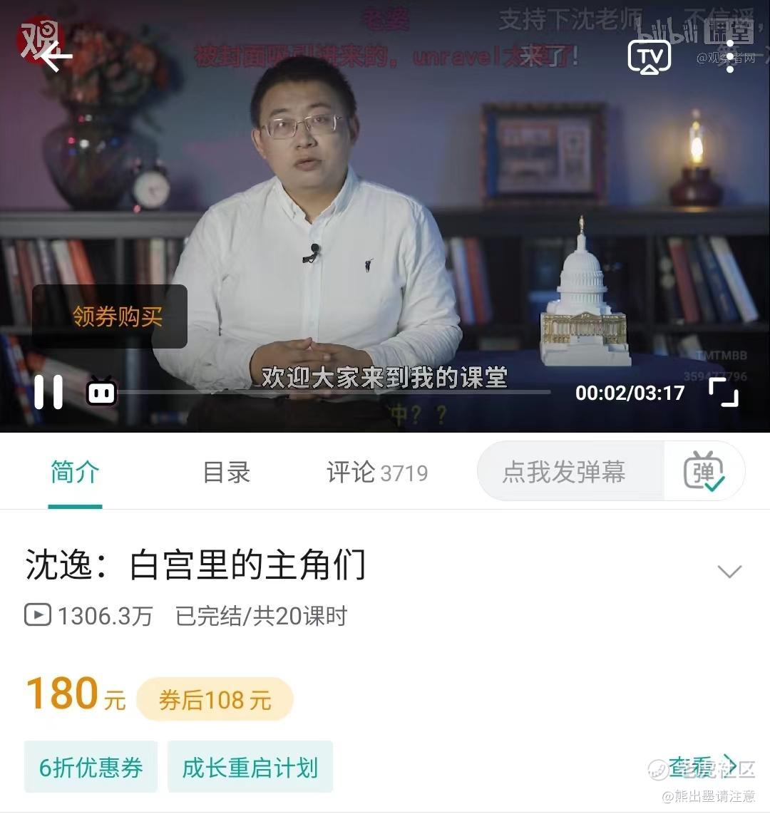 事实上,大众对于高质量内容的付费热情一直在线,B站课堂专区的知识内容销售数据就可以佐证。比如罗翔主讲的《刑法悖论十讲》,定价99元,目前播放量高达1694.7万;沈逸主讲的《白宫里的主角们》,定价180元,播放量高达1306.3万。