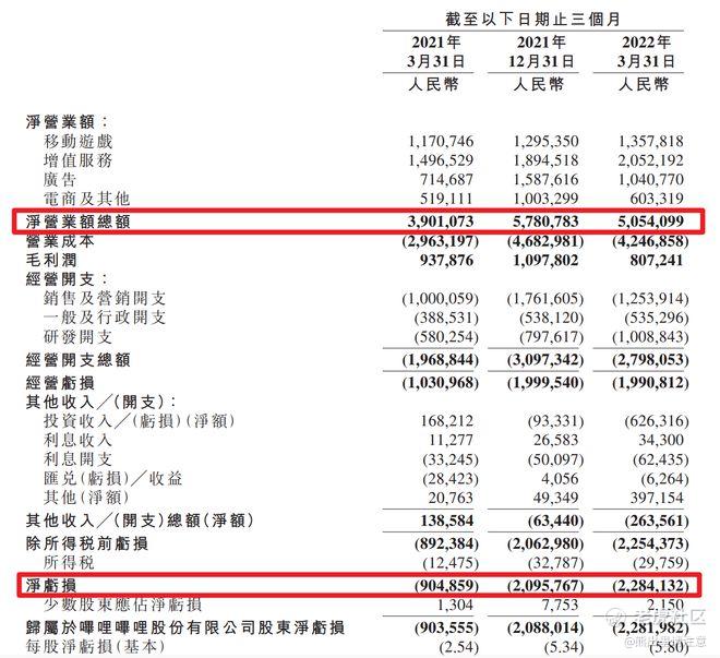财务方面更是如此,2022年第一季度B站收入同比增长30%,为近三年以来的最低增速。毛利润为8.07亿,同比下降14%。净亏损22.84亿元,上年同期净亏损9.05亿元,同比扩大超1.5倍。