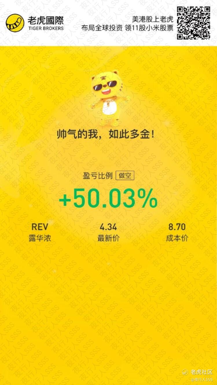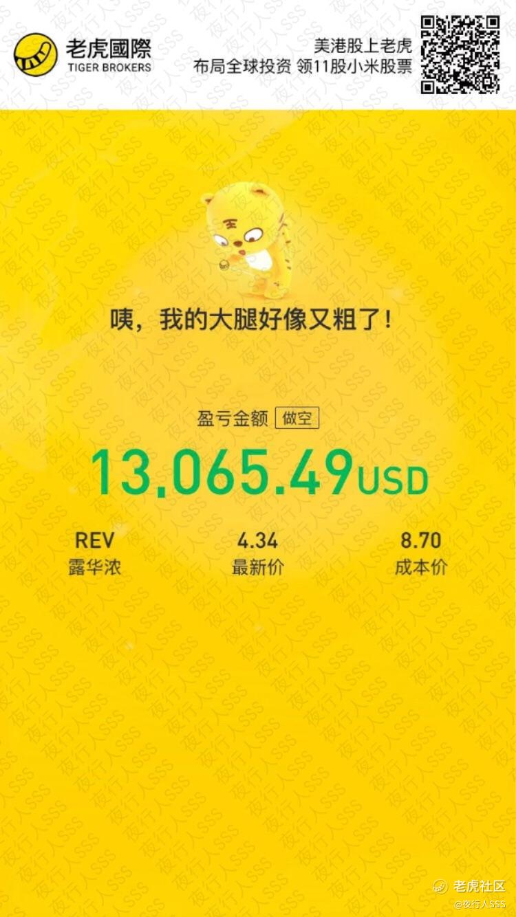 REV做空爆赚【6月23号老虎发帖建仓,说好的50%利润,说到做到,已止盈,订单见留言区。如果你关注了我,这50%利润应该出现在你的账单里了[财迷] 对了,我今天1块的时候发帖建仓了$HTG Molecular Diagnostics, Inc.(HTGM)$,可以参考一下,但不建议目前1.25追高。【欢迎关注我 ,免费传道授业解惑 】