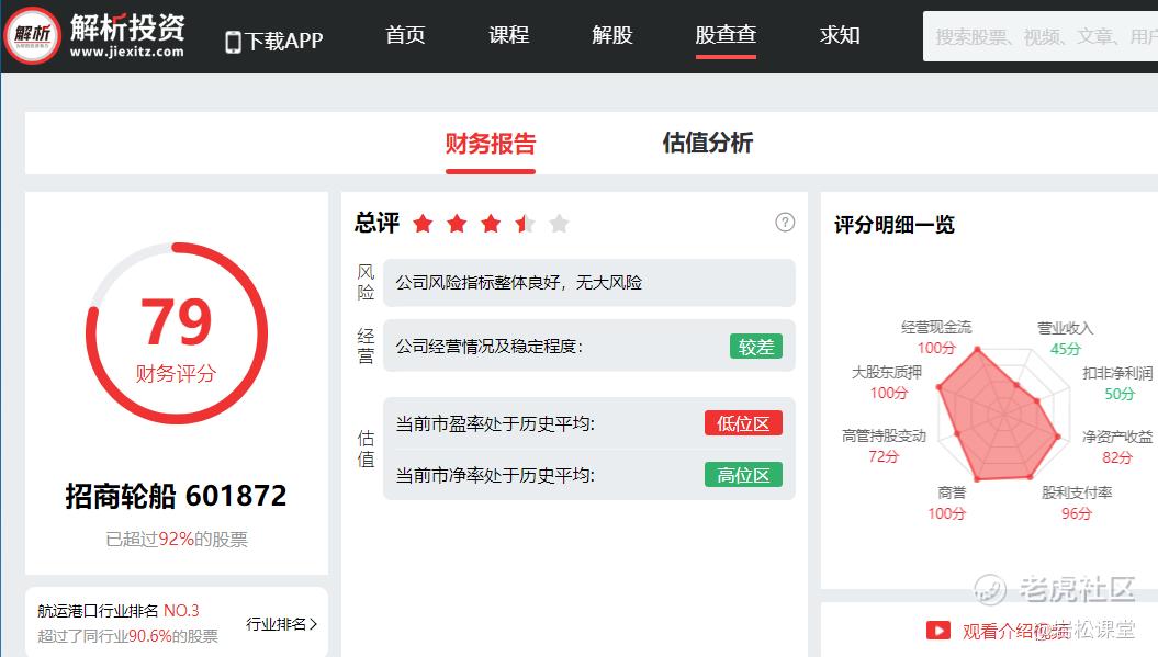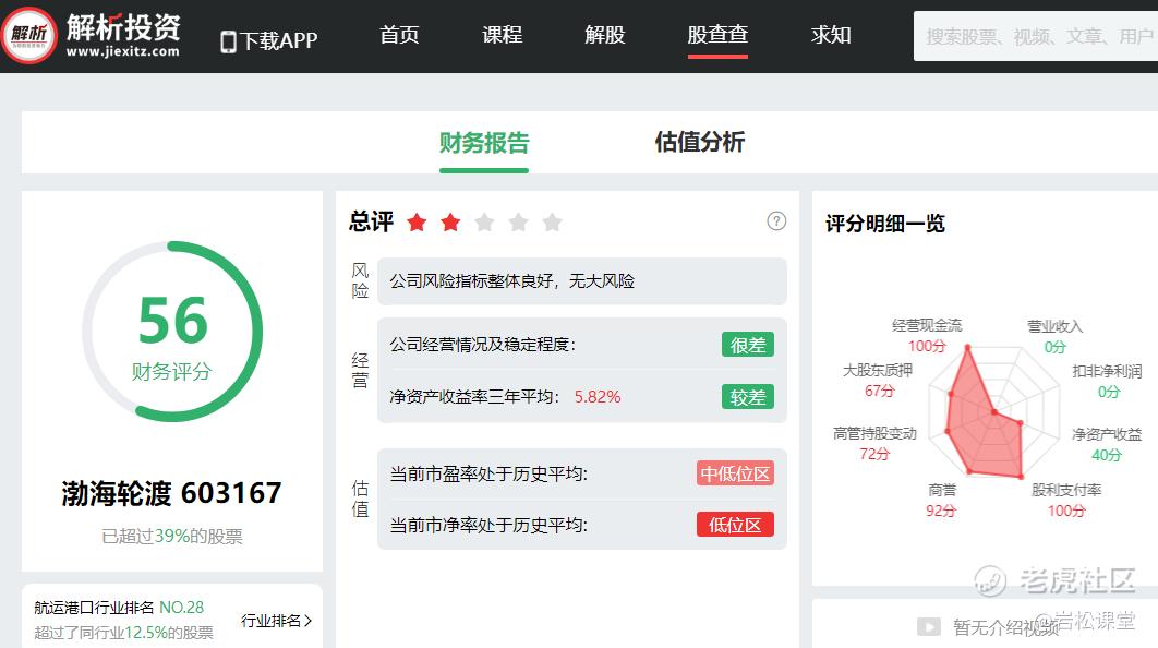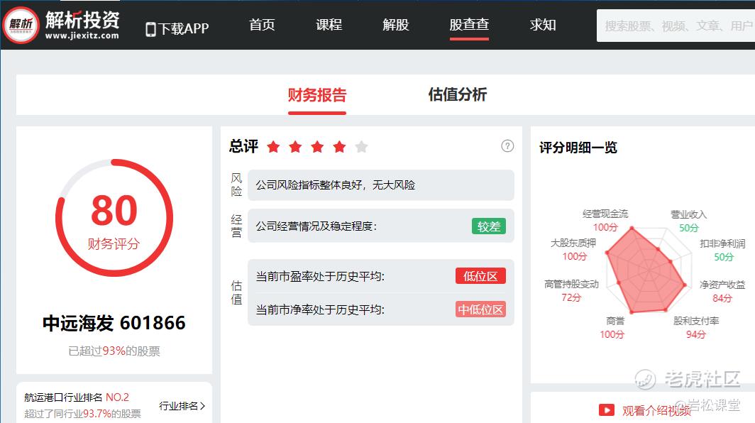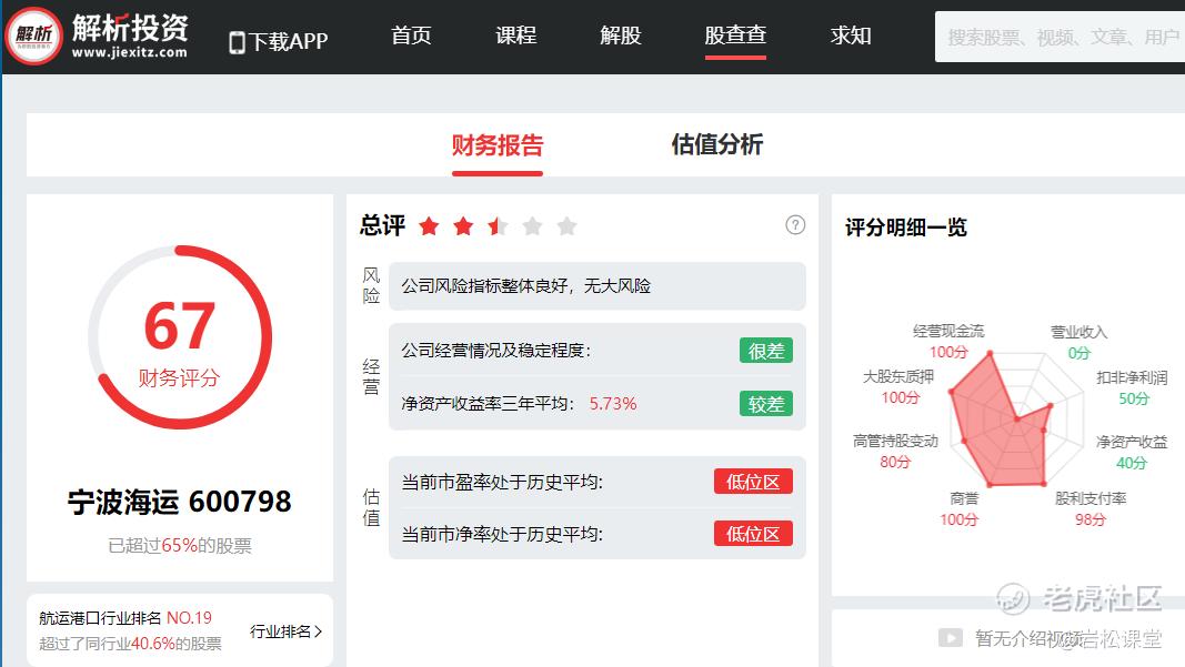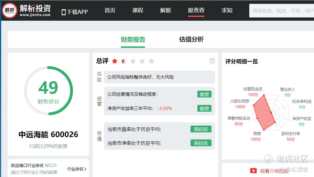 中远海特:业绩呈周期波动,整体基本不增长。目前估值17倍PE-TTM,高估,ROE股查查评分仅16分,不考虑。