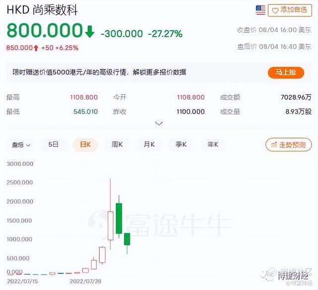 资本市场被一只暴涨320倍的股票搞得天翻地覆,$尚乘数科(HKD)$ 也因此大博眼球。