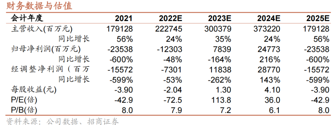 投资建议:公司业务成长性与壁垒兼具,组织战略远见与执行力俱佳。短期扰动不改长期增长空间,我们调整2022-2024年收入预测分别为2227.5/3003.8/3732.2亿元,维持“强烈推荐”评级。
