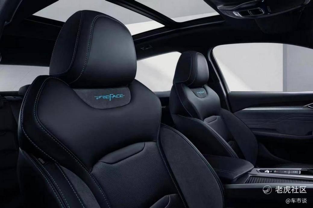 如果想要一款更加个性的车,只此青绿车型新增Alcantara麂皮灰色内饰,座椅头枕处勾勒有“PREFACE”青绿字标,副驾驶中控饰板处还刻有“只此青绿”文字标识,很有特色。