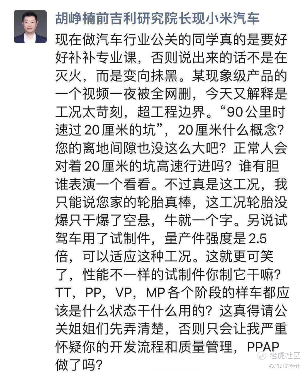 交付迫在眉睫,但理想试驾车还在用试制阶段的零部件,并且量产件和试制件强度还不一样。对于这一情况,胡峥楠对理想的开发流程和质量管理提出了新的质疑——理想L9做PPAP (生产件批准程序) 了吗?