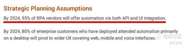 1、到2024年,95%的RPA供应商将通过API和UI集成提供自动化服务;