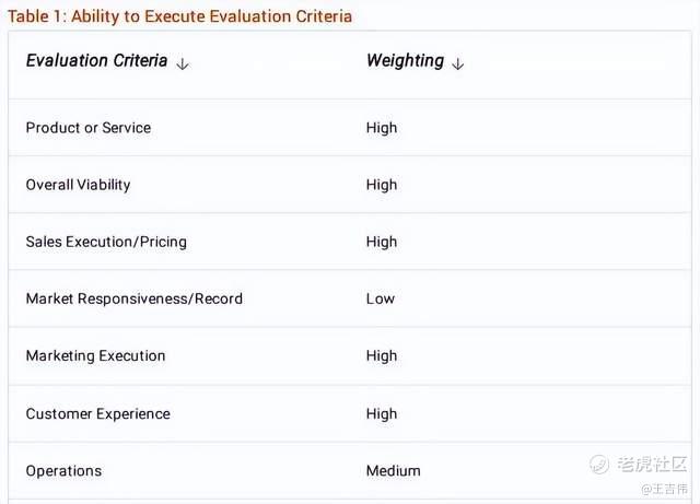 今年MQ报告的评估标准,在纵轴执行能力上,产品或服务、整体生存能力、销售执行/定价、营销执行、客户体验这几个维度,所占权重都是比较高的。弘玑Cyclone能在执行能力上取得这个成绩,说明其在这些方面都做得比较不错。