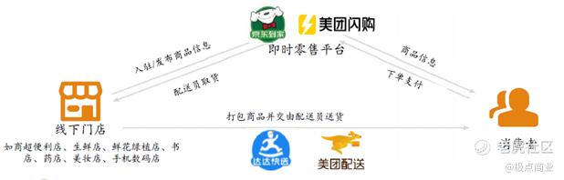 与传统线上电商不同,即时零售深度依赖于线下实体的发展,将线上电商和线下零售的优势结合在了一起。