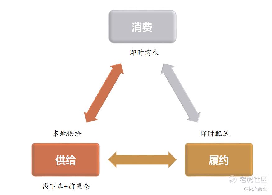 从需求端自发形成的越来越多的即时性需求,倒逼零售行业进化出了即时零售的新业态。其运行逻辑,是通过即时履约和本地供给两大核心要素,满足消费端的即时需求,支撑起了即时零售的稳固三角。