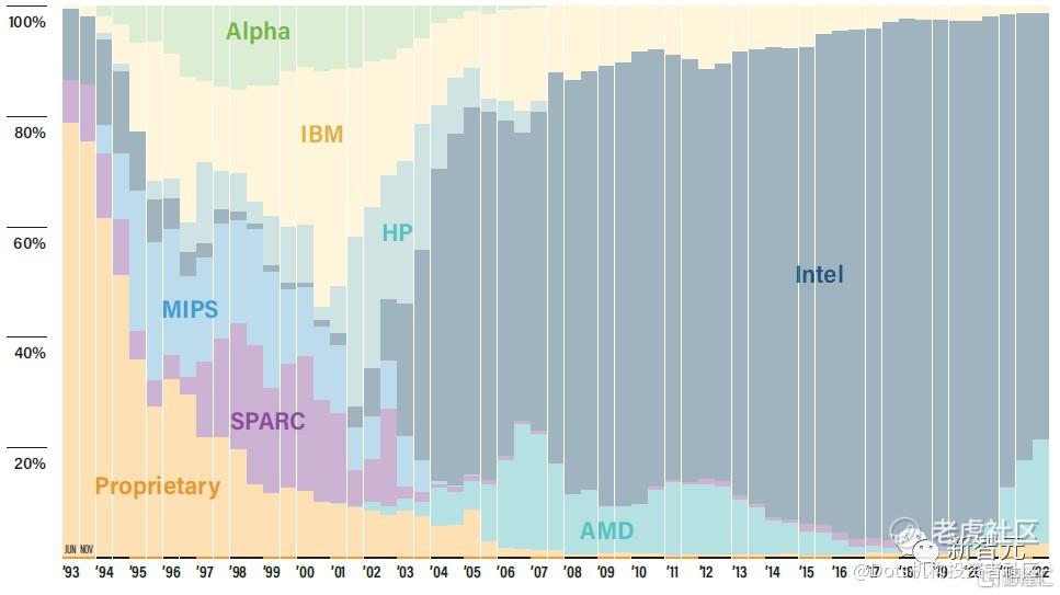 从2017年到2020年,英特尔在高性能计算领域达到极盛的市场占有率一度超过90%。