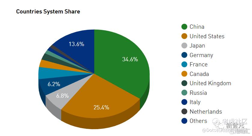 而在总性能排行榜上,美国的优势仍然不可动摇,以47.3%的总算力牢牢占据首位,不难看出,此次登顶的Frontier为美国稳定霸榜贡献不小。