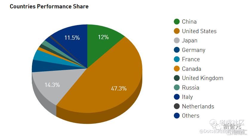 美国并不是唯一取得显著成绩的地区。欧洲也表现良好,从总排名上看,美、中、日占据前3,前十中剩余的七席则全部为欧洲国家占据。