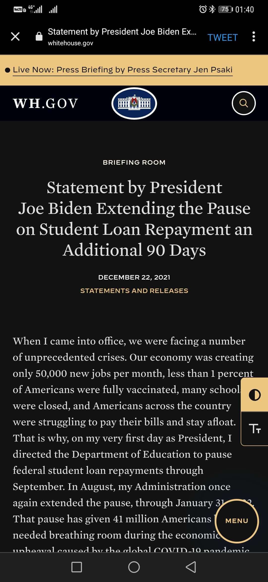 President Joe Biden extended the pause on students loan repayment an additional 90 days.