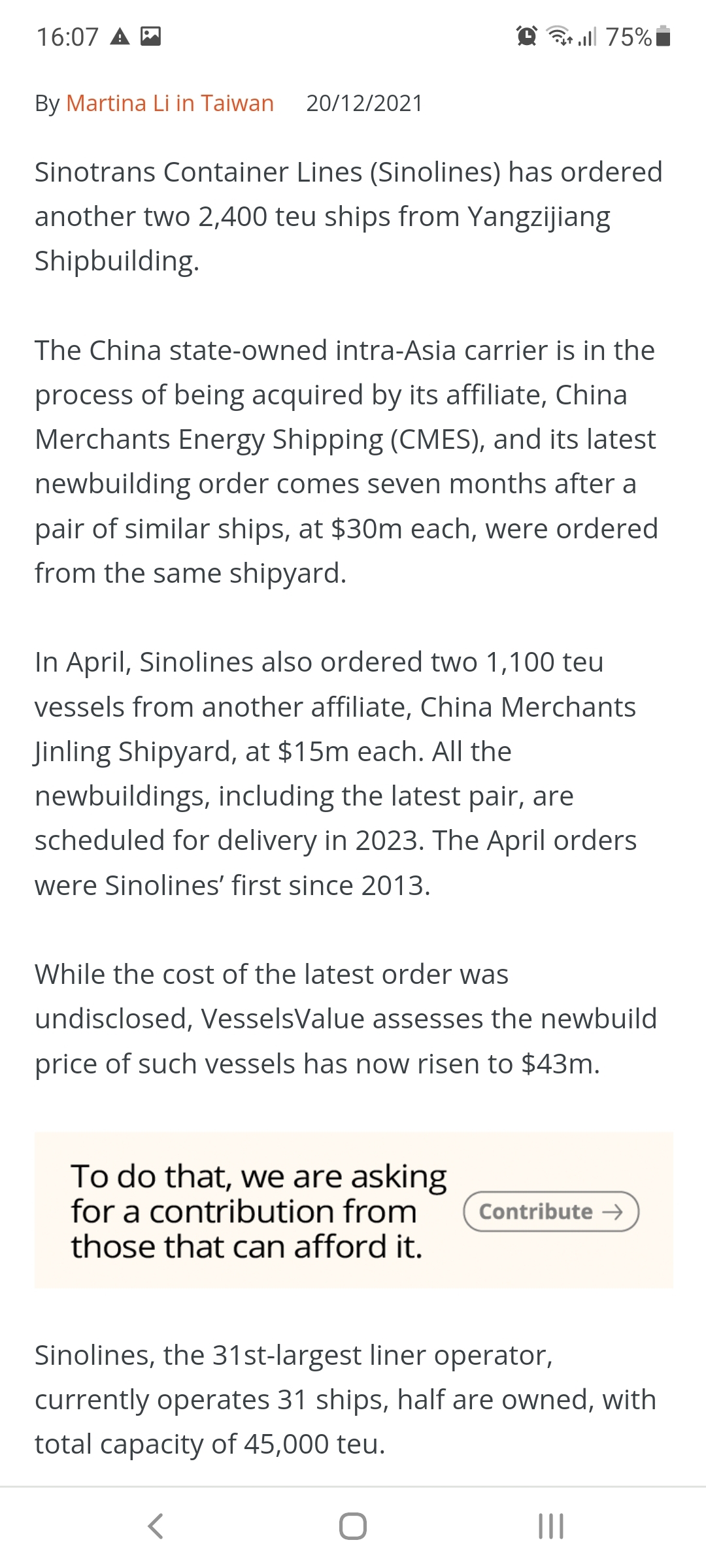 $YANGZIJIANG SHIPBLDG HLDGS LTD(BS6.SI)$Reshare with screenshot. Wonder why Tiger always slow in reporting the news. This is a huge deals!