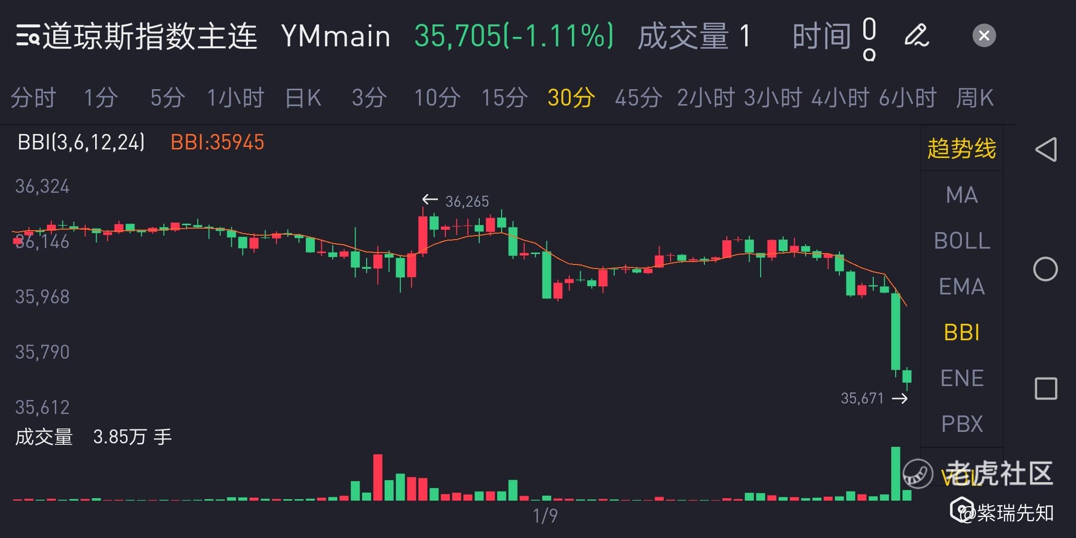$道琼斯指数主连 2203(YMmain)$